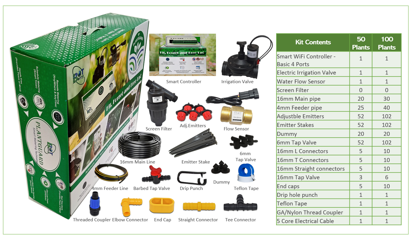 - Adjustable drip emitters and additional 4mm tap valve control for finer watering adjustments